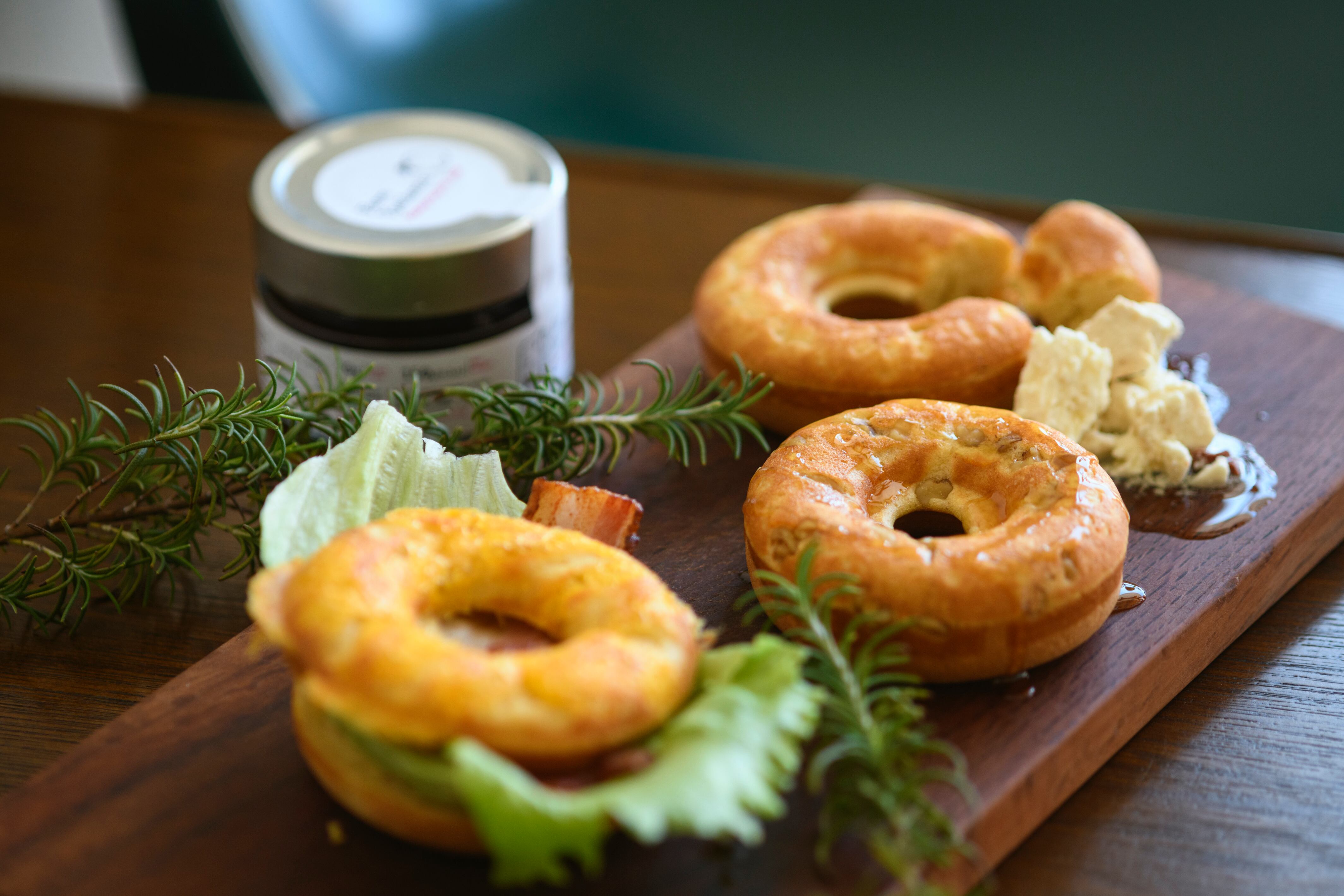 自然解凍でナイフが入るぐらいの硬さになったら、フローズンのままお召し上がりいただけます。解凍後はそのままでも、オーブントースターで焼き直すのもオススメ。ヨーグルトやハチミツ、甘いチョコレートなどお好みのトッピングもお楽しみください。ベーグルみたいにカットして、サラダやベーコンをサンドすれば朝食にもぴったりです。