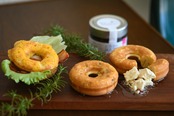 自然解凍でナイフが入るぐらいの硬さになったら、フローズンのままお召し上がりいただけます。解凍後はそのままでも、オーブントースターで焼き直すのもオススメ。ヨーグルトやハチミツ、甘いチョコレートなどお好みのトッピングもお楽しみください。ベーグルみたいにカットして、サラダやベーコンをサンドすれば朝食にもぴったりです。