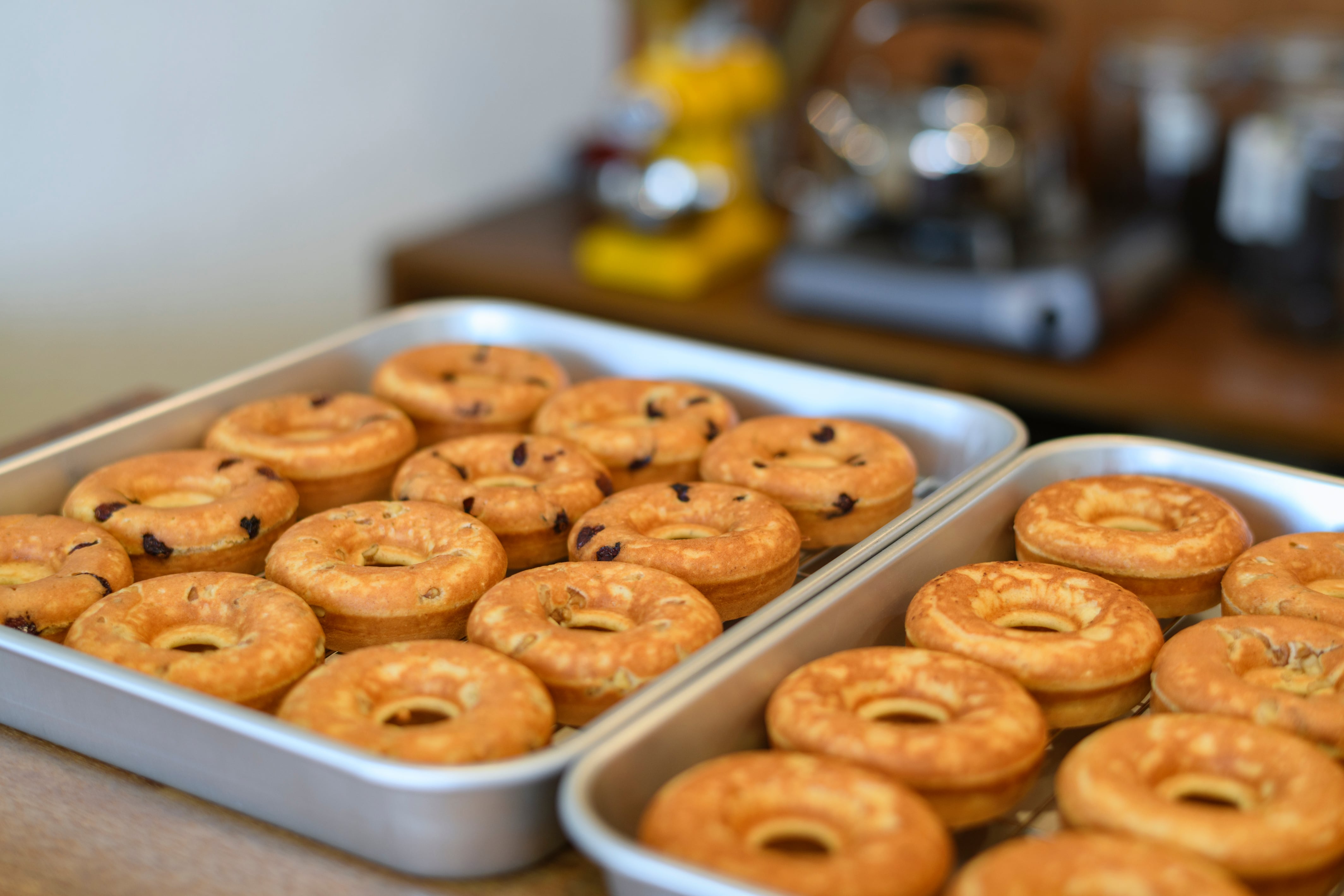【ドーナツの原材料】国産玄米粉、沖縄産タカキビ、ホエイ(沖縄県産の牛のミルクを使用しています)、きび砂糖、バター、卵、なたね油、ベーキングパウダー(アルミフリー)、塩(原料の一部に卵・乳を含む)